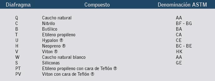 Hypalon ®, Neopreno ®, Viton ®, Teflón ® son marcas registradas por DuPont
