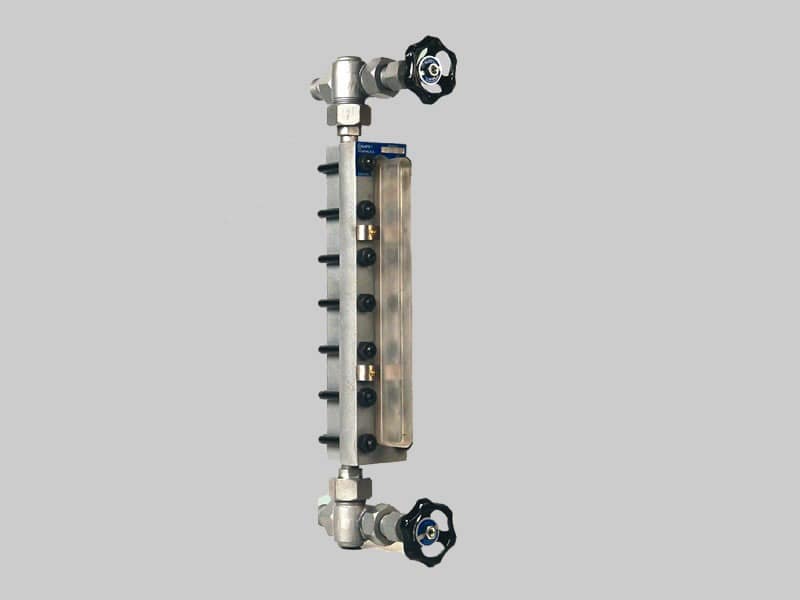 El indicador consiste en un juego de válvulas que están directamente conectadas al recipiente a medir y un visor uniendo ambas válvulas. Durante la operación normal, permanecen abiertas encausando la presión para igualar el sistema, permitiendo así también al líquido alcanzar su verdadero nivel.