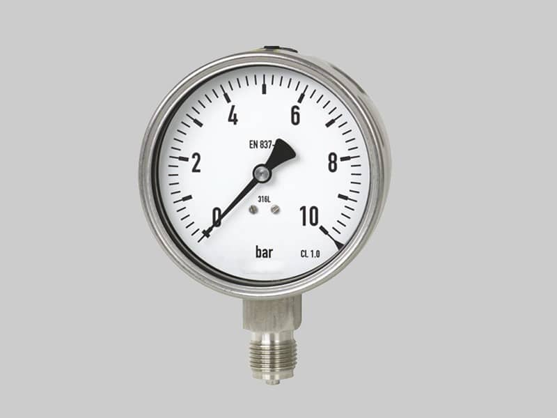 Manómetro de uso en industrias alimenticias, químicas, farmacéutica, petrolera, etc. Ésta es una serie es robusta, aptos para ser aplicados en procesos con severas condiciones ambientales, fluidos agresivos y vibraciones.