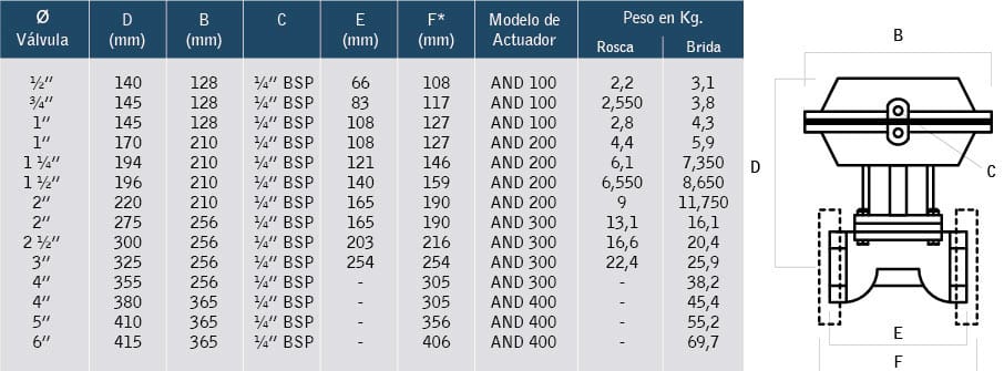 Los actuadores AND están disponibles en las siguientes versiones: