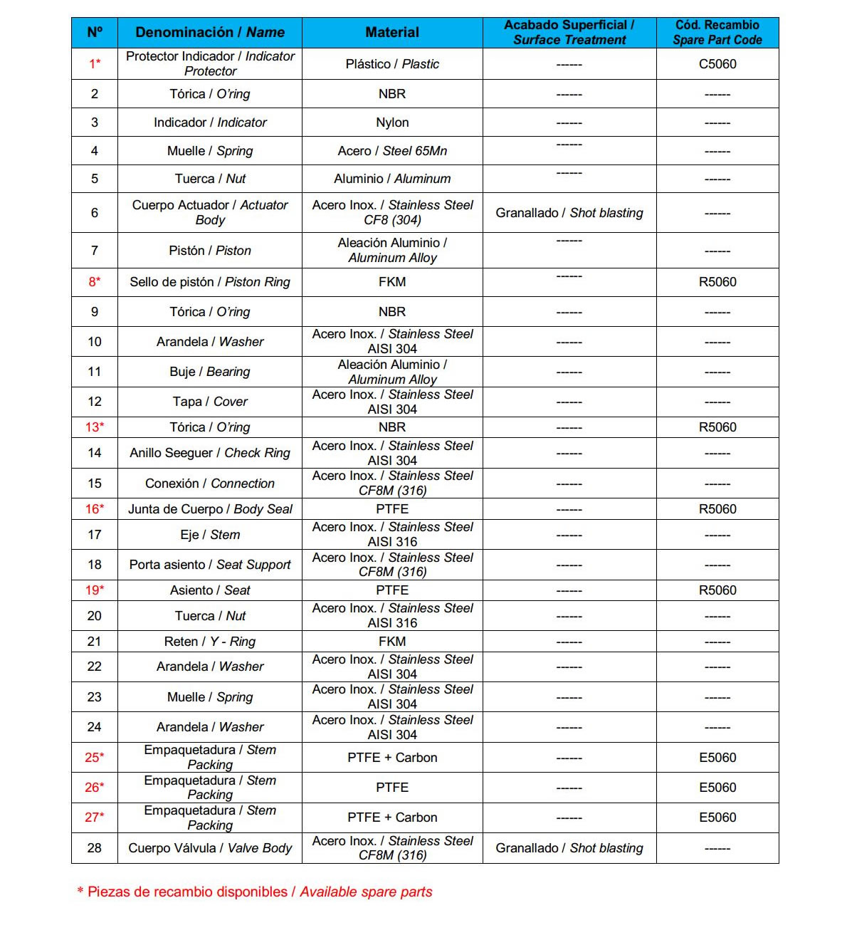 1. Construcción en acero inoxidable CF8M.