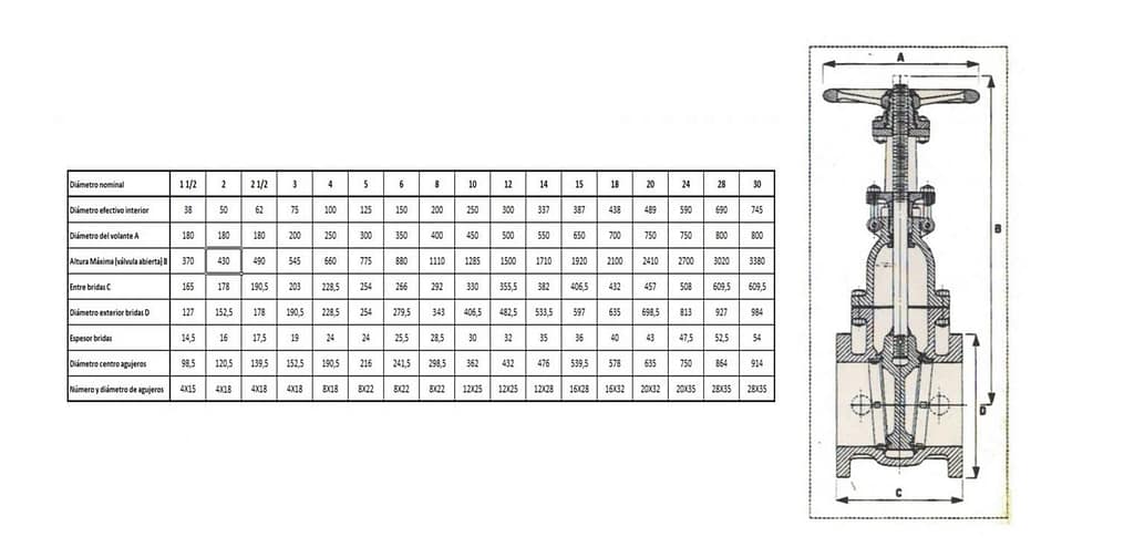 VÁLVULA ESCLUSA HIERRO VÁSTAGO ASCENDENTE según normas ASTM-A-126-B