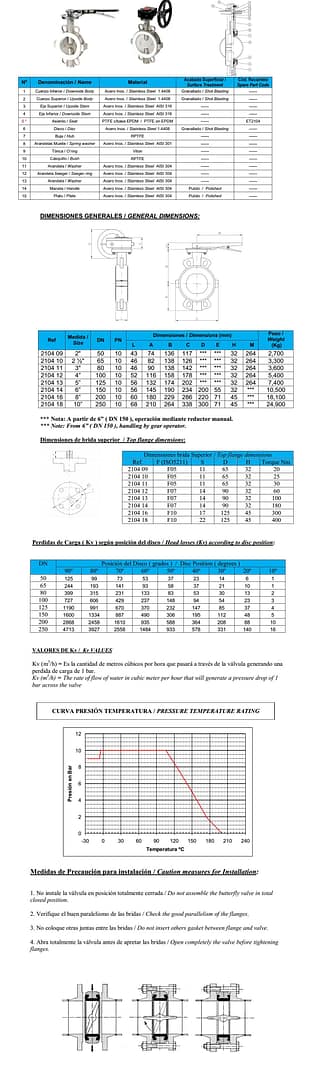 (CF8M) para montaje entre bridas ANSI 150 y EN