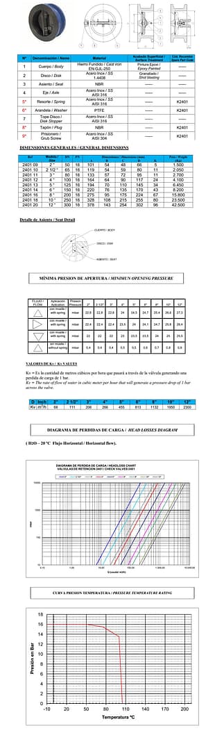 Las válvulas de retención son válvulas automáticas y autónomas que se utilizan para evitar la inversión del flujo en un conducto. Cuando está abierto y bajo la presión del flujo, el mecanismo de retención se mueve libremente por los medios, y ofrece muy poca resistencia y una caída mínima de presión.